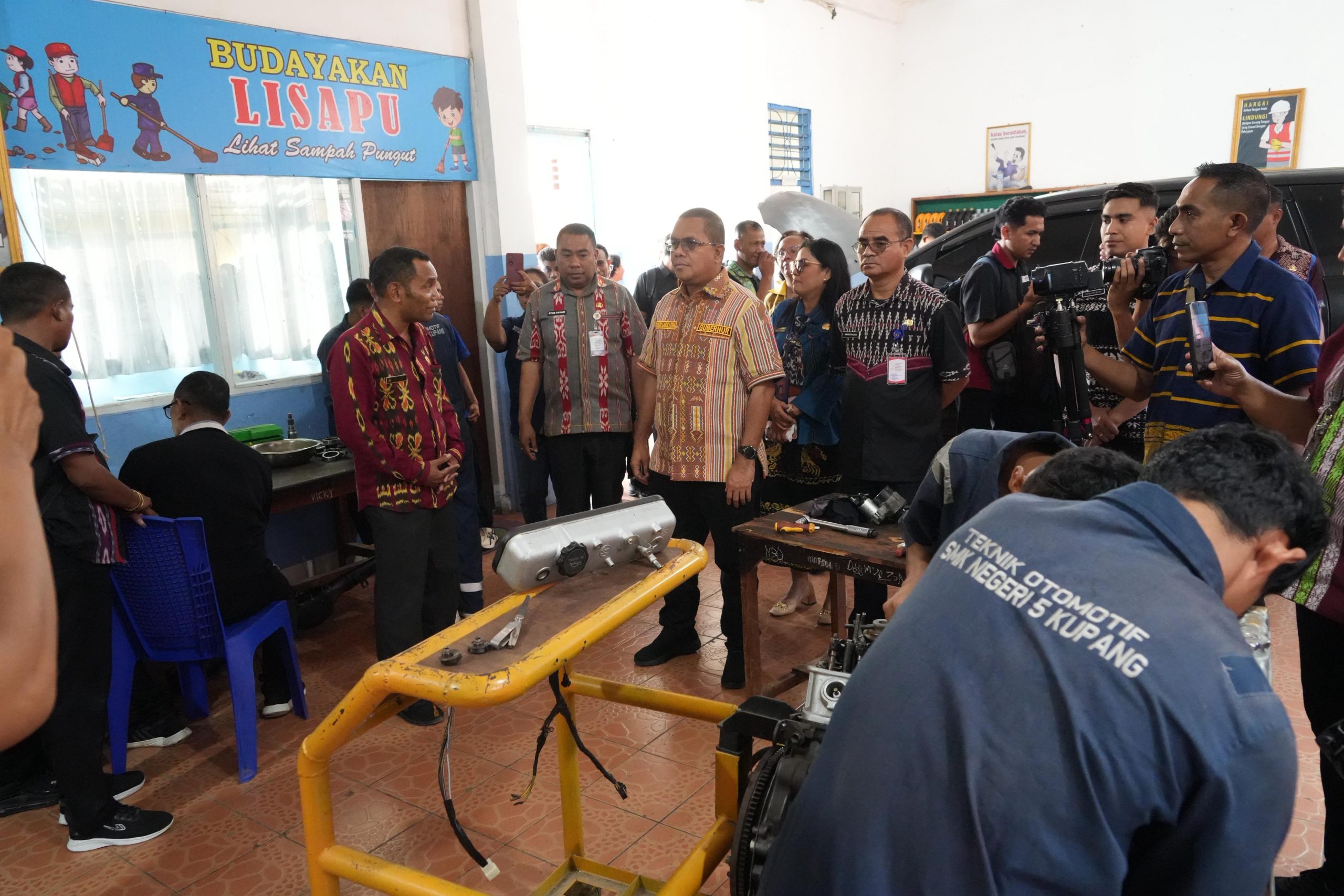 Dalam kunjungannya, Melki melihat langsung berbagai produk yang dihasilkan siswa SMK Negeri 5 Kupang, mulai dari mebel, desain grafis, produk energi terbarukan, hingga karya kreatif lainnya.