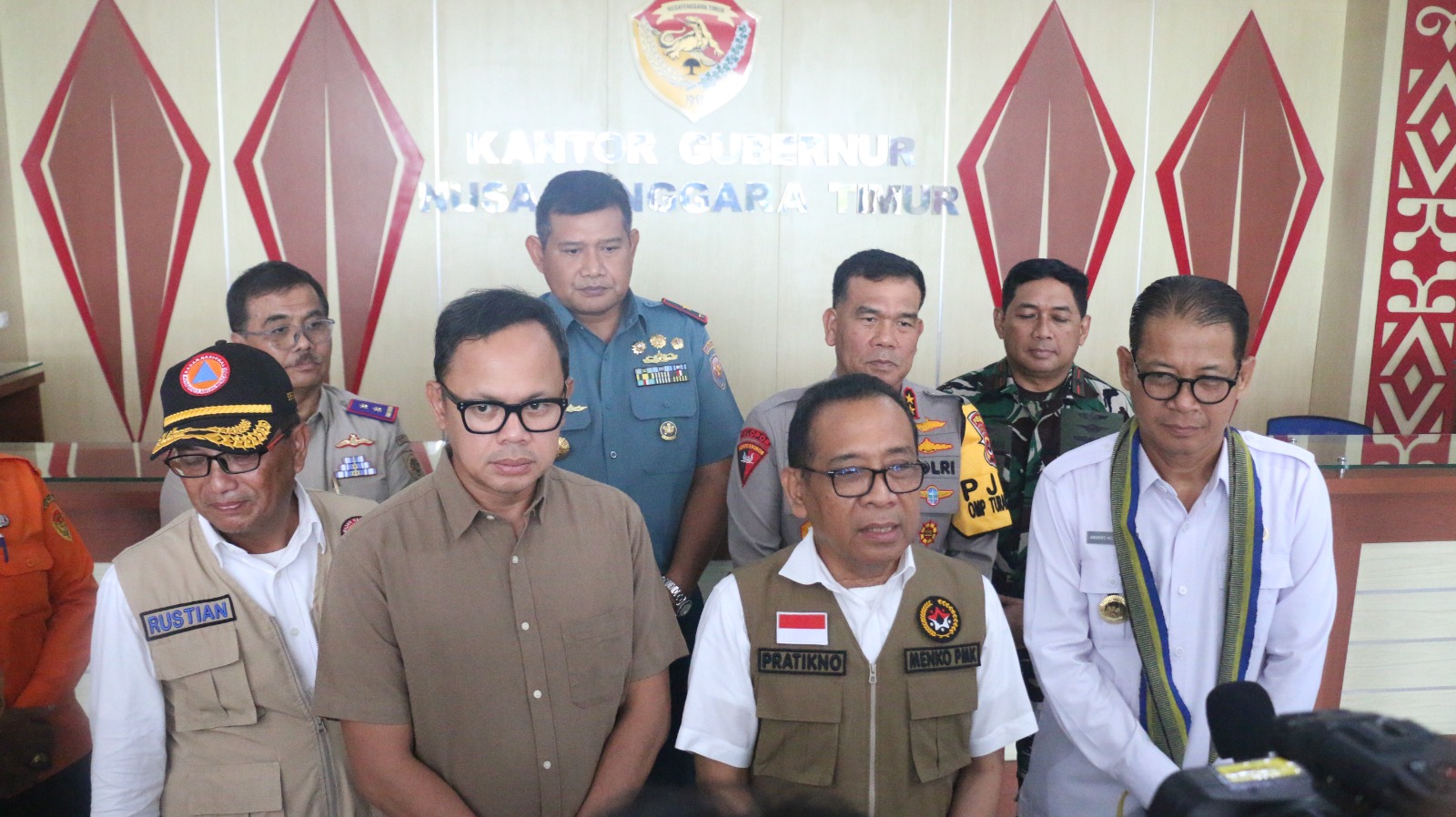 Kupang,Arahntt.com-Pemerintah Pusat bersama Pemerintah Provinsi NTT terus berkomitmen dan bersinergi dalam upaya bersama untuk penanganan bencana erupsi gunung lewotobi laki-laki dan konflik sosial yang terjadi di Kabupaten Flores Timur. Hal tersebut ditandai melalui komitmen bersama dalam Rapat Koordinasi Pj. Gubernur NTT, Dr. Andriko Noto Susanto, S.P, M.P bersama Menteri Koordinator Bidang Pembangunan Manusia dan Kebudayaan (Menko PMK) Pratikno, Kepala BNPB Letjen TNI Dr. Suharyanto dan Wakil Mendagri Bima Arya di Ruang Rapat Gubernur NTT, Senin (25/11/2024).