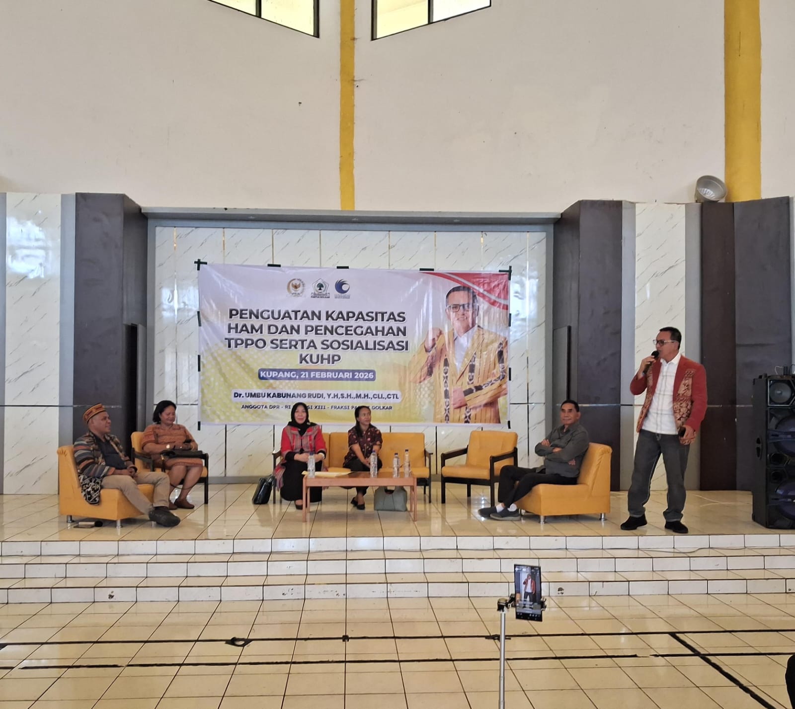 Kupang,Arahntt.com– Anggota Komisi XIII DPR RI, Umbu Rudi Kabunang, bersama Kantor Wilayah Kementerian Hak Asasi Manusia (KemenHAM) NTT menggelar kegiatan Penguatan Kapasitas Hak Asasi Manusia, Sosialisasi KUHP Baru, serta Upaya Penanganan Tindak Pidana Perdagangan Orang (TPPO) di Nusa Tenggara Timur.